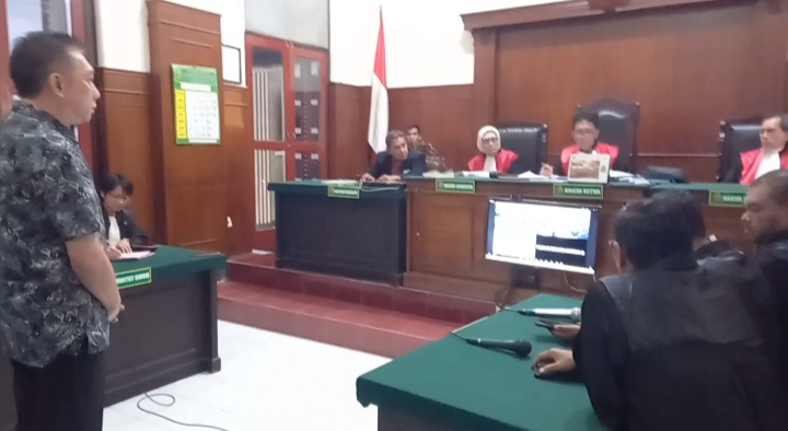 Foto : Kiri berdiri, Terdakwa Effendi Pudjihartono ketika diminta hakim ketua pada akhir putusan dibacakan