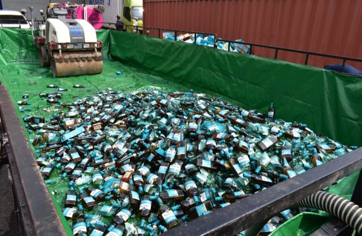Barang bukti ribuan botol minuman beralkohol yang disita saat dimusnakan di gudang kejaksaan