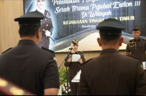 Surabaya, JejaringPos.com – Kepala Kejaksaan Tinggi Jawa Timur (Kajati Jatim), Dr. Mia Amiati, S.H , M.H., CMA., pimpin upacara pelantikan dan pengambilan sumpah jabatan dan serahterima jabatan (Sertijab) jajaran Kejati Jatim dan beberapa Kepala Kejaksaan Negeri (Kajari). Kamis (27/6).