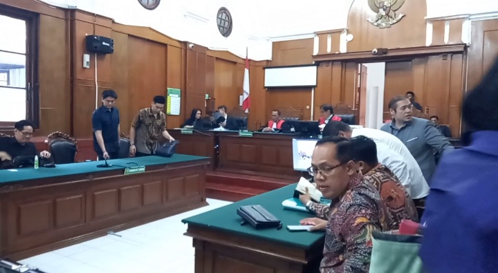 Itong isnaini Hidayat saat sebagai kuasa hukum tergugat notaris Edhi Susanto (Duduk batik merah)