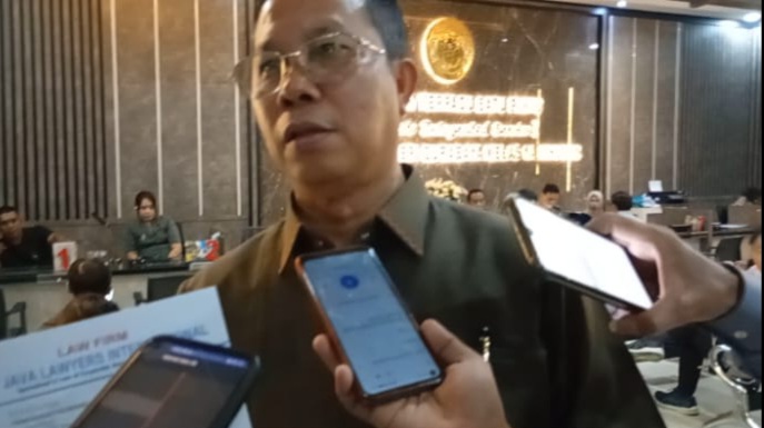 Foto: Advokat Robert Simangunsong saat usai menyerahkan surat permohonan melalui PTSP PN Surabaya