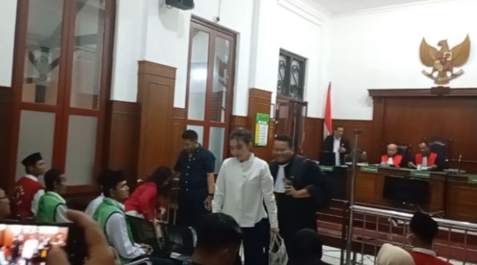 Baju putih, Vinna Natalia saat akan meninggalkan ruang sidang kartika