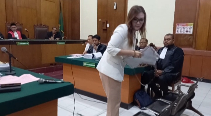 Foto : Ellen Sulistyo usai bersaksi pada sidang lalu, No urut 3 dari Ellen, Terdakwa Effendi didampingi pengacara