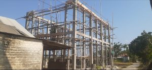 Sementara terlihat, sebagian kondisi fisik bangunan disisi kiri atas masih terlihat kerangka besi (reng balok) bergelantungan belum dilakukan pengecoran.