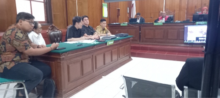 Kiri batik kuning, Pengacara Billy Handiwiyanto, Richard Handiwiyanto, Michael dan didampingi Nany Widjaja (Baju Putih) saat mendengarkan pendapat ahli Gansam (Kanan)