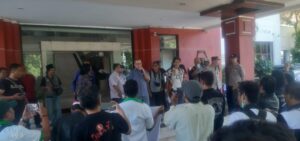 Aksi damai yang dilakukan di halaman Gedung DPRD Kota Surabaya.